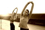 Women Engaging in Stretching Exercises at Sunrise A Source of Inspiration for Fitness and Wellness