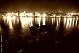 fires of the night city reflected in the river. the night houses reflected in the river.