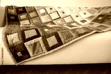 Patchwork quilt. Part of patchwork quilt as background. Handmade. Klimt print.