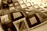 Patchwork quilt. Part of patchwork quilt as background. Handmade. Blanket with klimt print.