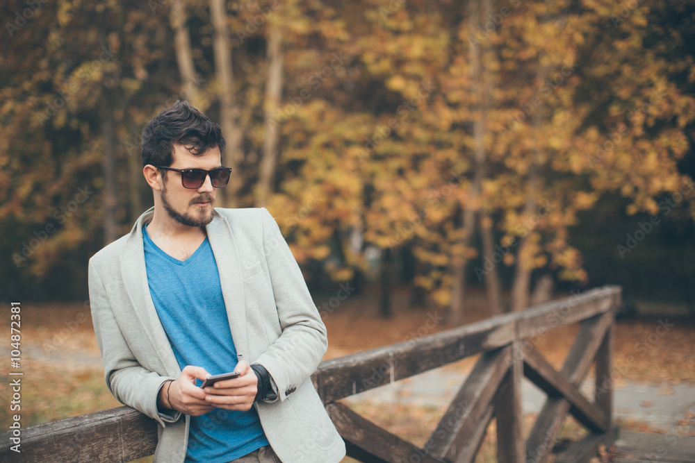 Young handsome man using his mobile phone