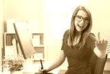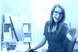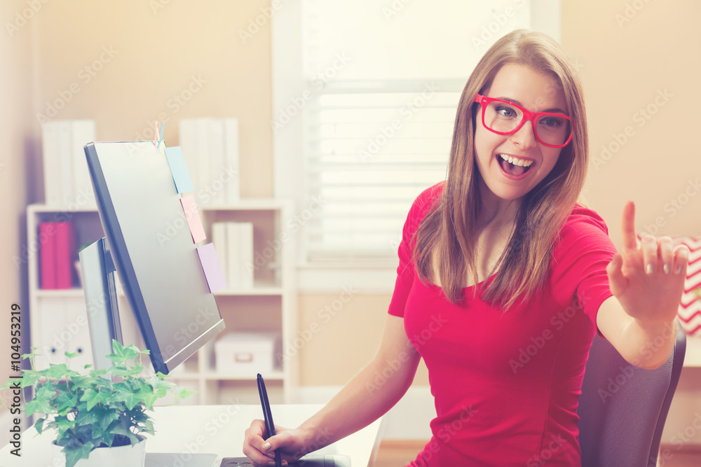 Young woman working with a pen tablet in her home office