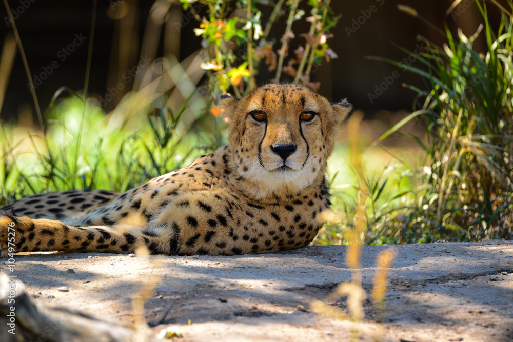 Cheetah closeup laying in shade