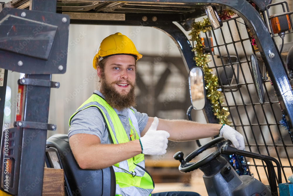 wood industrial man worker forklift driving. warehouse storage plywood shipping import export cargo. Male carpenter worker wood warehouse industry.