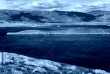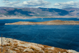 Baikal Lake in early autumn. Olkhon Island against blue water of Small Sea on sunny day. Natural background