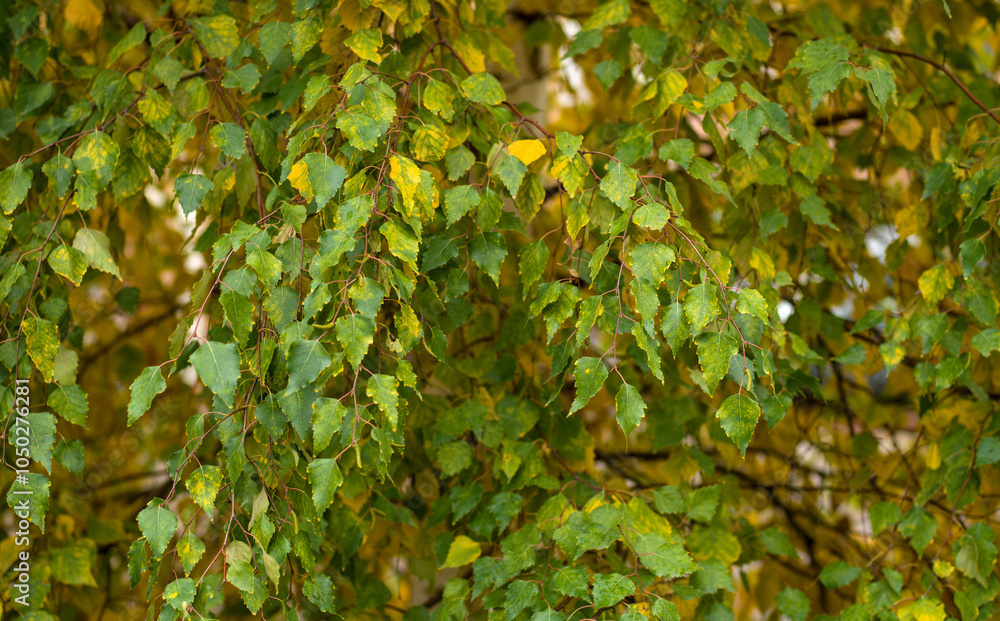 Birch tree leaves in autumn background