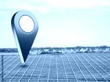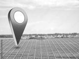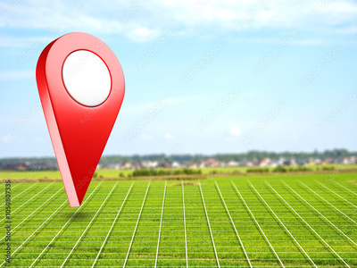 Land for construction. Geotag over lawn with white lines. Place to build country house. Empty field with giant size mark. Place for construction of farm. Farm land to create plantation
