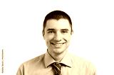 Smiling young businessman looking at camera