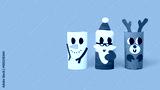 Christmas toy from toilet tube roll, paper toy santa claus, snowman, reindeer, tree on blue background. Holiday easy DIY for kids, decoration idea for winter season home xmas party. Children's crafts
