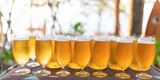 Beer in glasswares which are prepared for the party event. Refreshment drinking, close-up and selective focus.