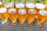 Beer in glasswares which are prepared for the party event. Refreshment drinking, close-up and selective focus.