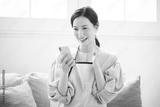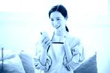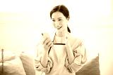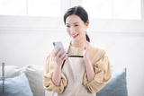 スマホを操作するエプロンを付けた主婦のような女性 検索して見つけた