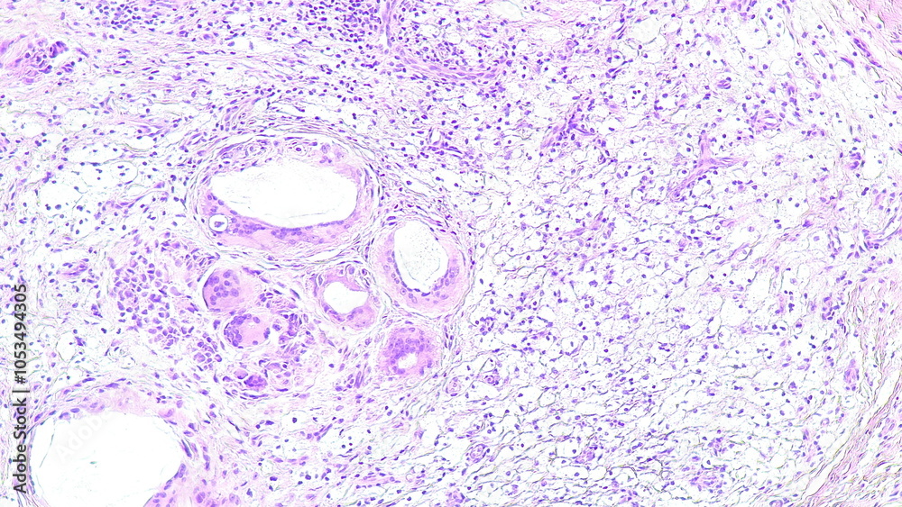 Photomicrograph of a soft tissue tumor in the dextra manus area in the anatomical pathology laboratory