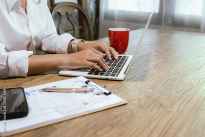 Close-up of businesswoman paying online with credit card