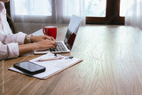 Close-up of businesswoman paying online with credit card