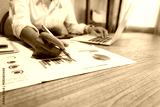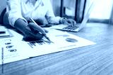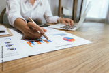 Businessman or accountant is analyzing data charts, graphs and dashboards on laptop screen to prepare statistical report.