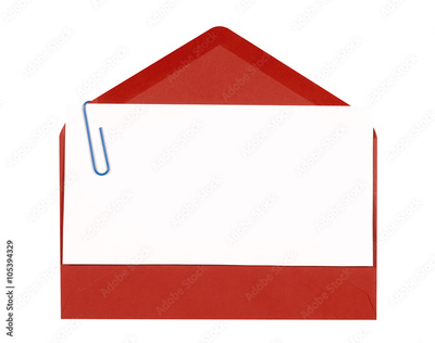 Invitation invite greetings or thank you note card with red envelope isolated on white background photo