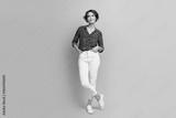 Full length size photo of bob brown hair business lady product owner deep thinking looking novelty isolated on pink color background