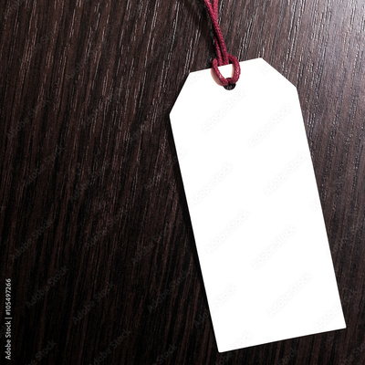 price tag on wooden background.Blank tag.Discounts. Benefit. marketing concept