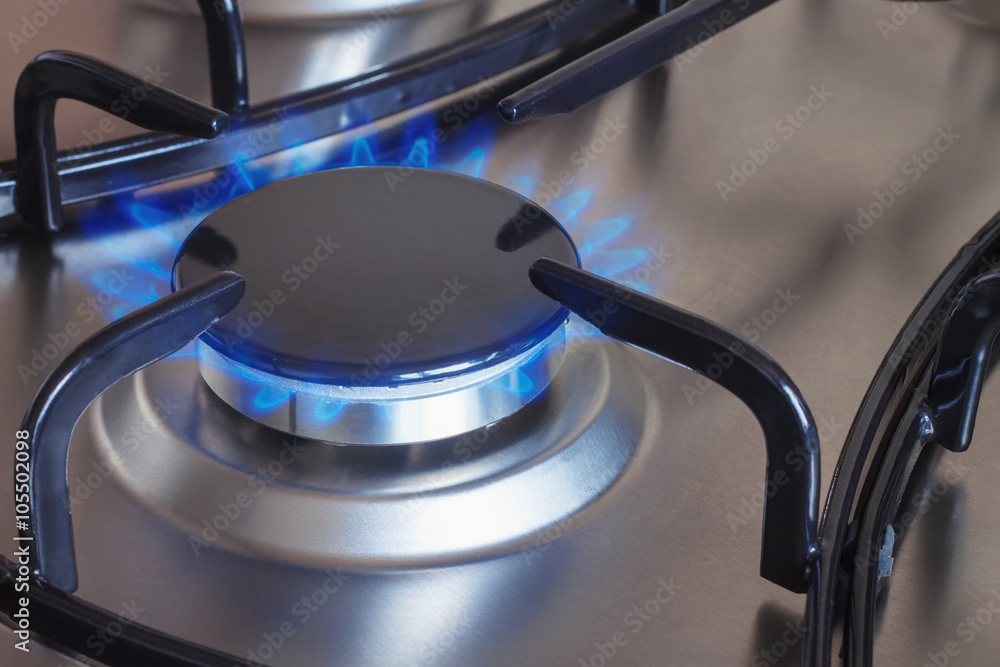 gas burning on the kitchen gas stove