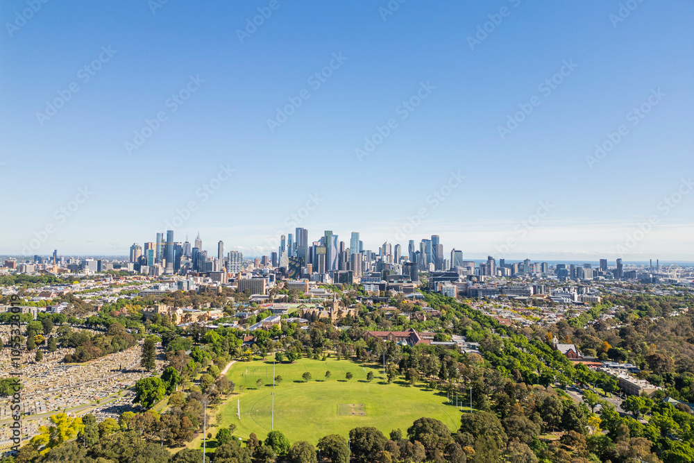 An Aerial view of Carlton and Melbourne on a sunny summer afternoon.
