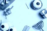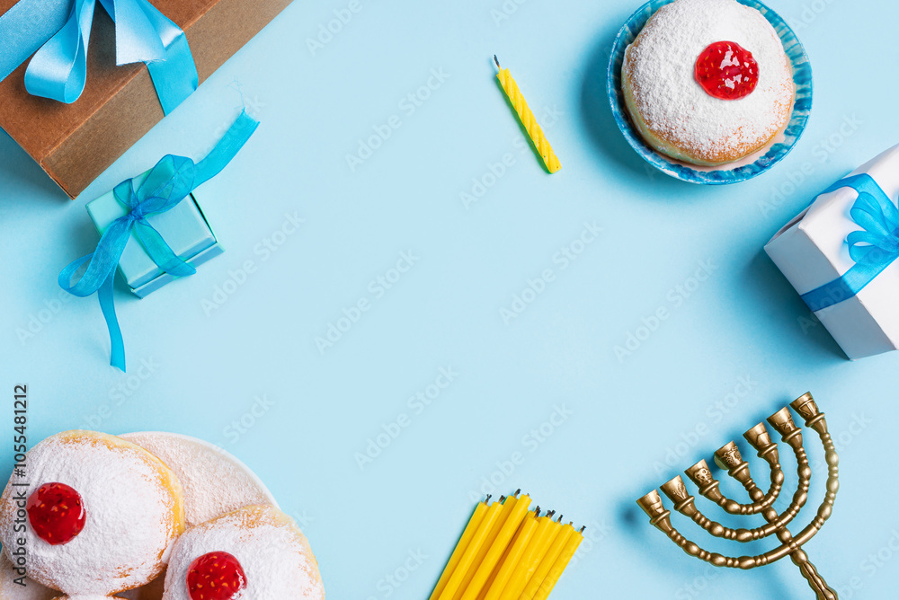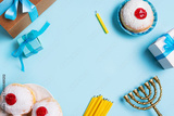 Hanukkah template with Menorah and sufganiyah jelly donuts