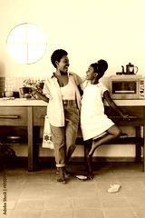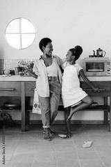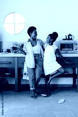 Happy family singing and laughing together in the kitchen