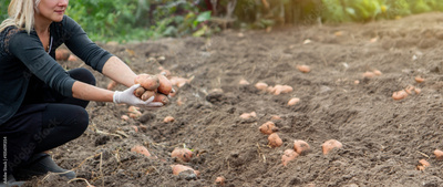 a female farmer holds harvested potatoes. Harvesting organic potatoes. Agriculture and farming.