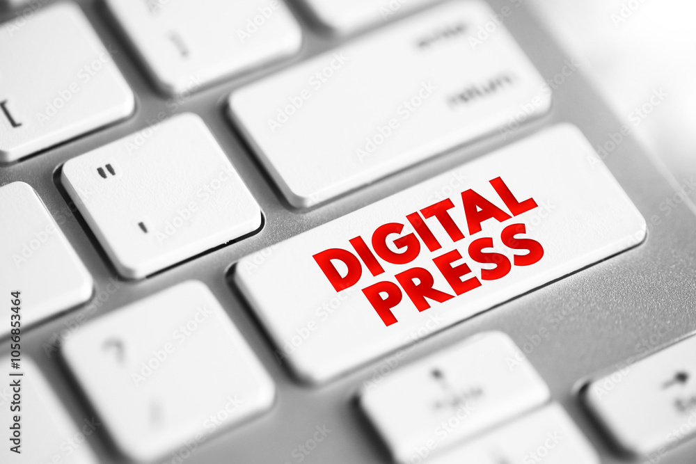 Digital Press - method of printing from a digital-based image directly to a variety of media, text concept button on keyboard