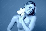 Young smiling feminine nice lady woman with slim skinny body perfect skin wear top bra lingerie stand hold in hand flower looking camera isolated on plain green background. Lifestyle diet fit concept.