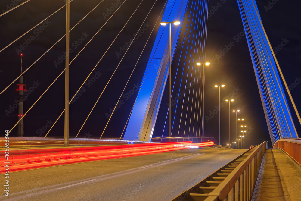 Single-Shot HDR of light trails of cars on a bridge at Ludwigshafen in Germany.