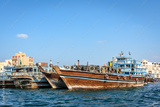 Traditional arabian boats or dhows docked at Dubai Creek