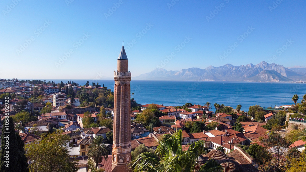 View of Yivli Minare Mosque in Old town Kaleici. Antalya. Turkey