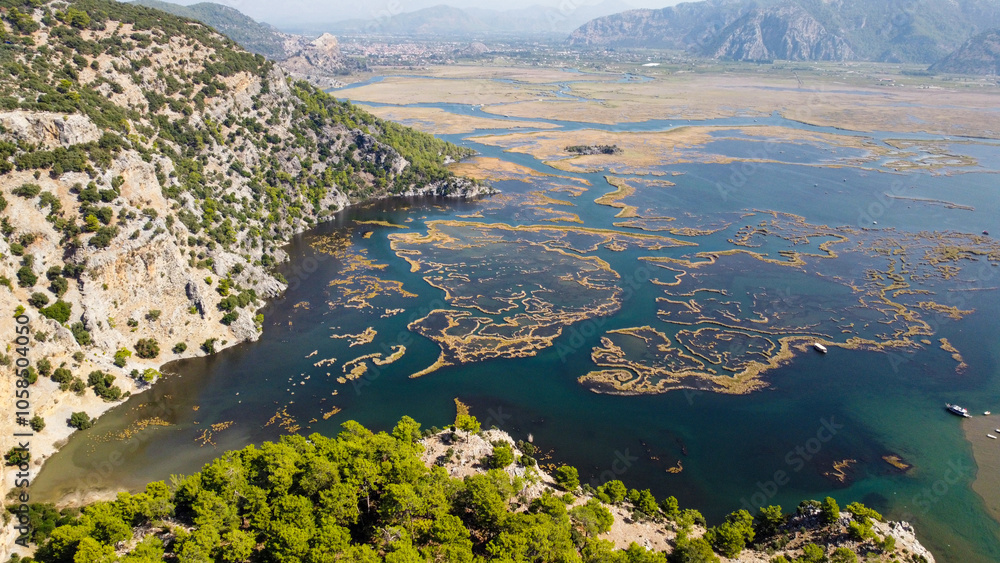 Caretta Beach on Dalyan Mugla, Iztuzu Beach, Turkey. Drone photo.