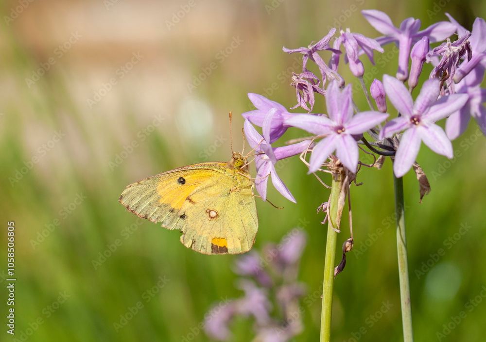 Yellow butterfly (Colias croceus) feeding on flower nectar