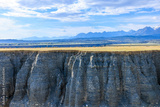 Yellow grass platform and Anjihai Grand Canyon weathered mountain natural landscape in Xinjiang. car background.