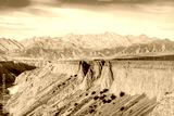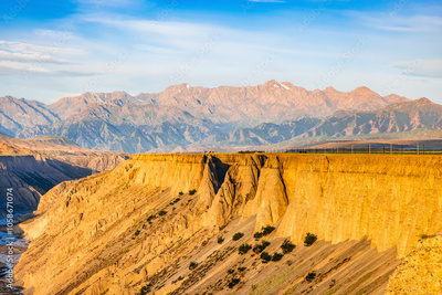 Anjihai Grand Canyon natural landscape at sunrise in Xinjiang. Famous earthquake fault zone scenery in China. mountain faults and canyon with rivers.