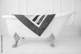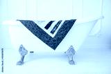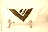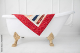 Patchwork quilt. Part of patchwork quilt as background. A blanket in style patchwork. Color blanket. Handmade. White bathroom.