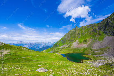 Hochjoch with Herzsee above the village of Schruns, Montafon Valley, State of Vorarlberg, Austria,