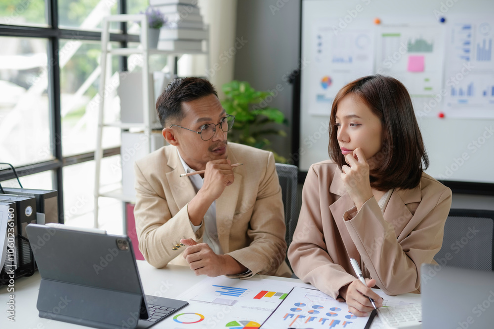 Business partners brainstorming and planning strategy, working together in the office discussing new business plan