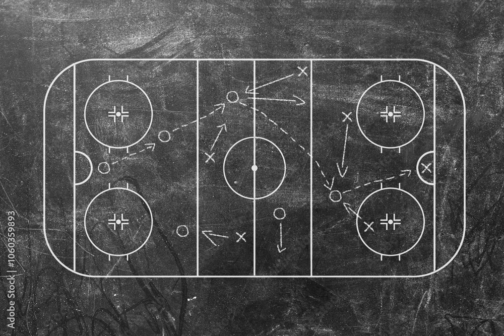 Image of hand drawn hockey tactic plan on blackboard. Way to glory and hockey championship.