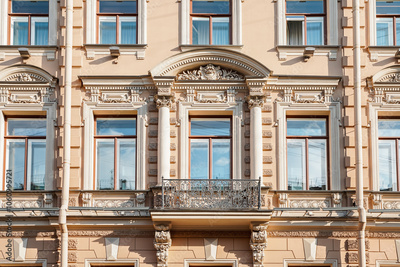 Facades of historical buildings in the center of St. Petersburg in summer. Saint Petersburg, Russia - 19 July 2024