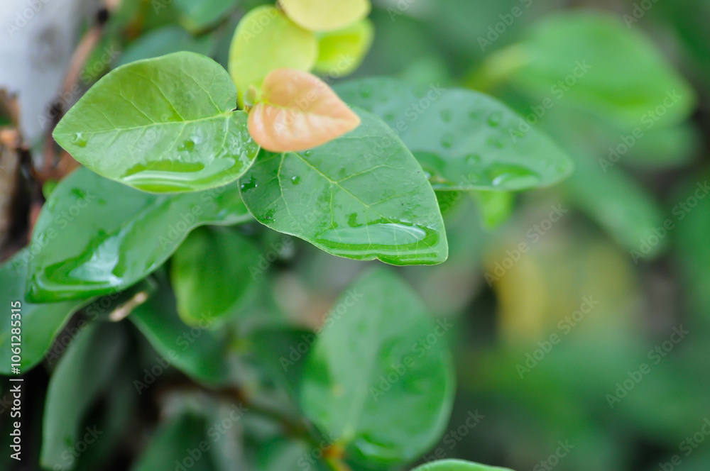 ficus pumila or climbing fig or MORACEAE and rain droplet