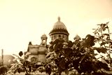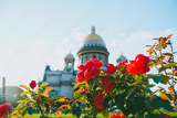 Beautiful urban landscape in summer St. Isaac's Cathedral in St. Petersburg, a field of flowers.