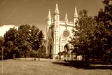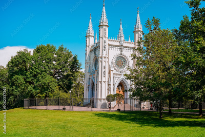 The Gothic Chapel in Peterhof, the Alexander Nevsky Church in the park. Saint Petersburg, Russia - 19 July 2024