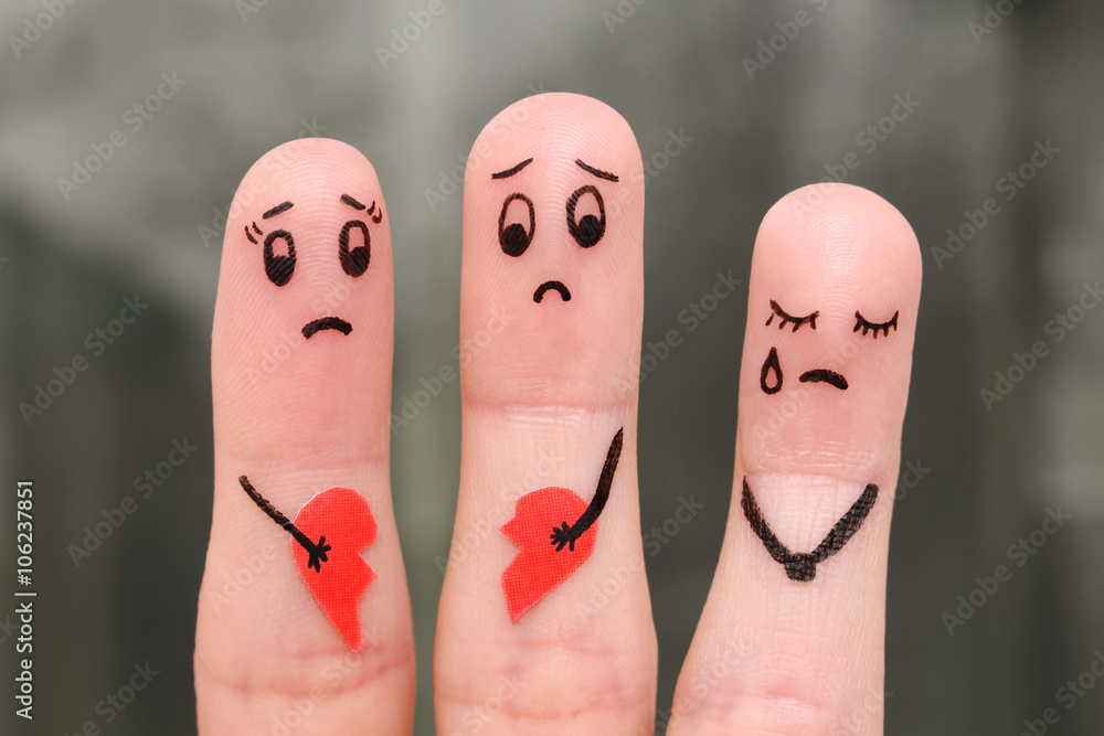 Finger art of family during quarrel. The concept of parents quarrel, child was upset.