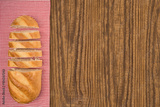 Loaf of bread on a wooden table. Top view