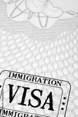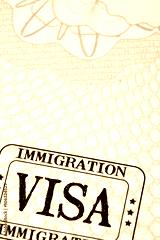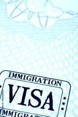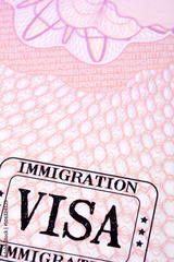 Immigration visa rubber stamp on a passport paper page photo