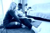 Mothers gay couple having fun with their baby son at home - Family, lgbt and love concept - Main focus left mother face