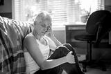 Sad tired ill sick lonely disappointed caucasian old elderly senior woman